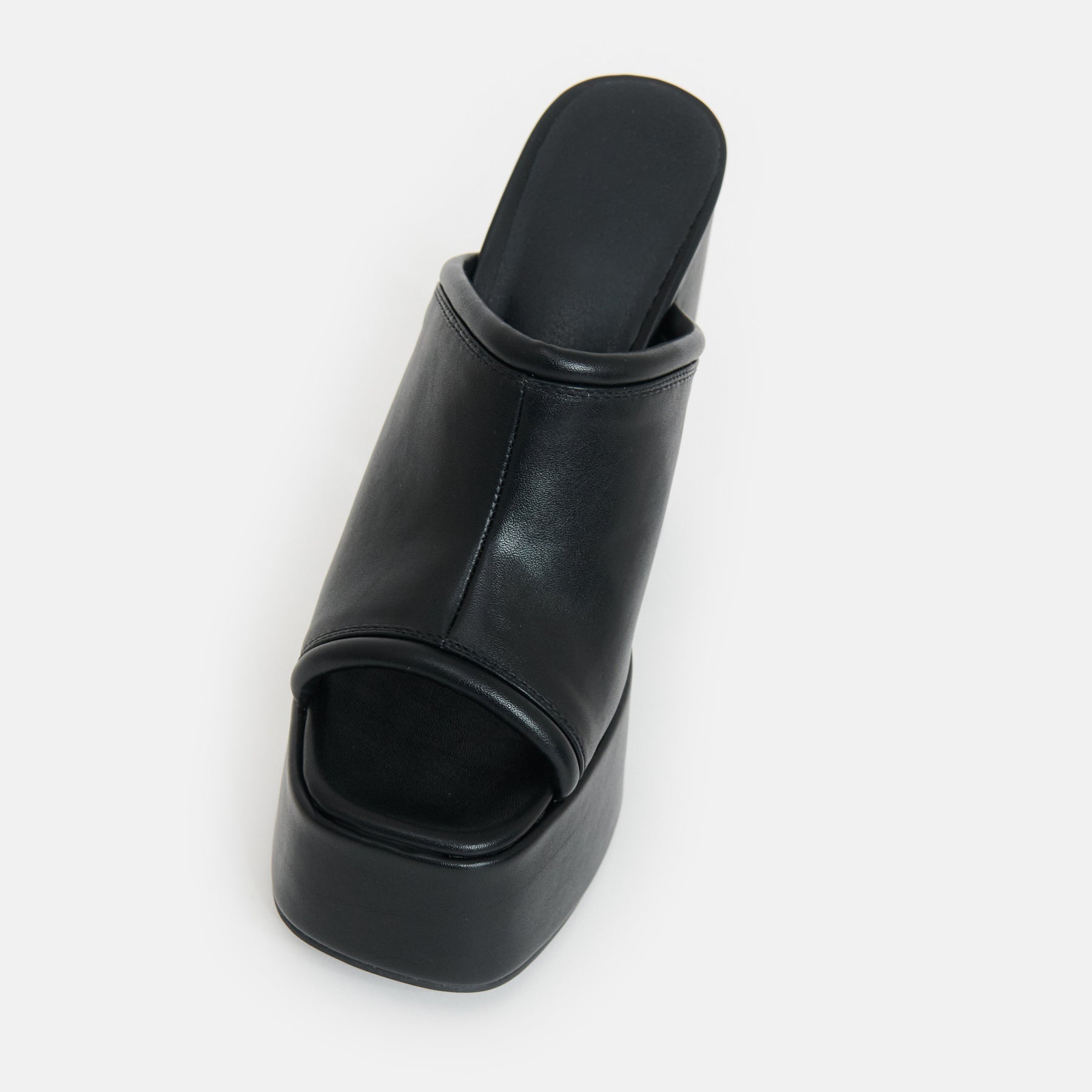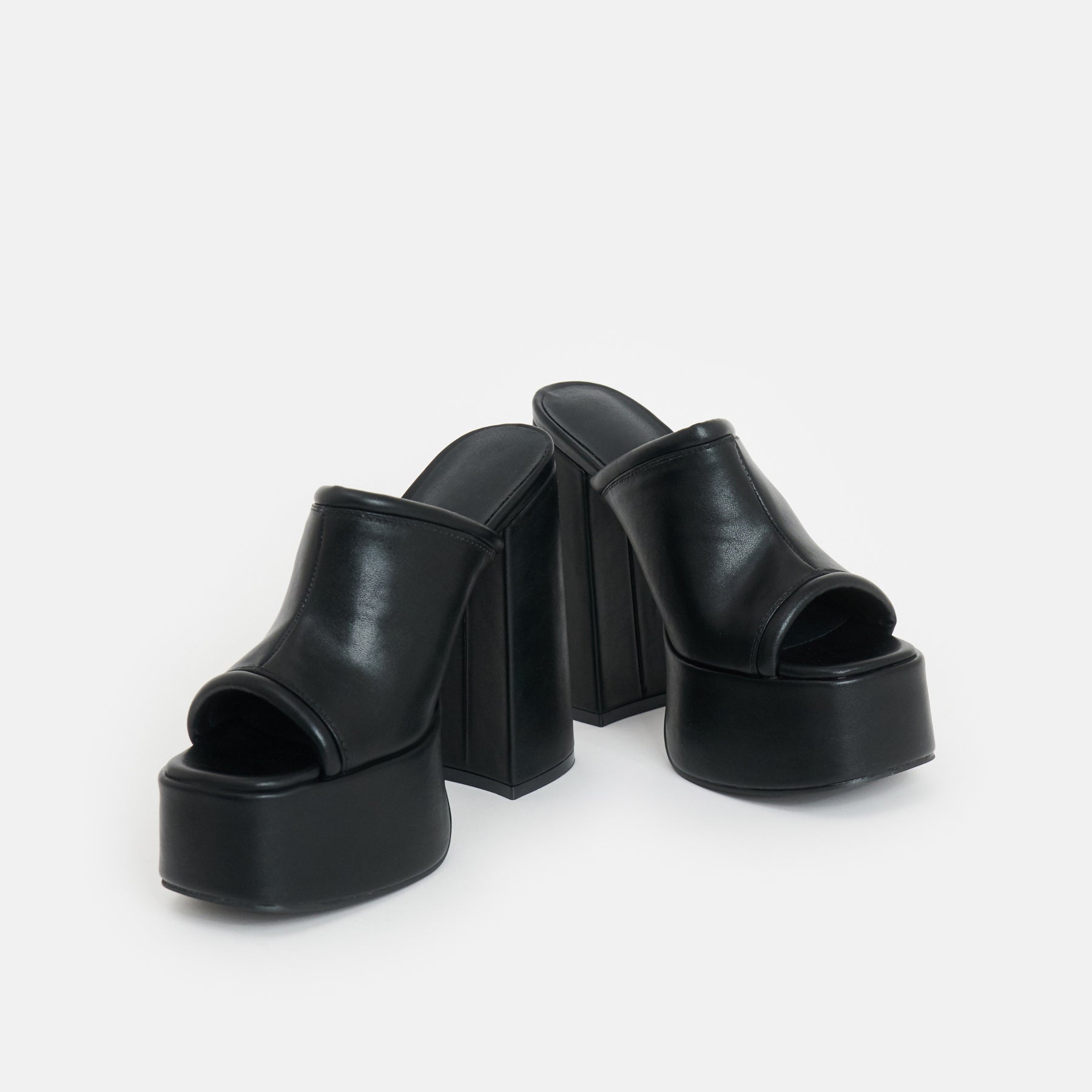 These mule shoes are straight out of a 70s disco! If you're a chunky platform heels kind of person then you're in the right place. The colder season doesn't have to mean big boots only - layer up under your black chunky heels with socks, tights or leg warmers to stay iconic all year round. These platform shoes come in all black vegan leather and feature a mega heel for added height to your look.