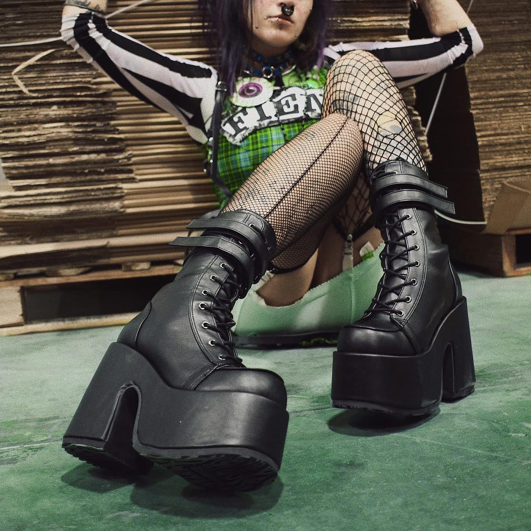 Stand tall in these 5" (127mm) chunky heel, 3" (75mm) platform lace-up mid-calf boot featuring double hook N' loop straps and back zip closure for easy wear and go.