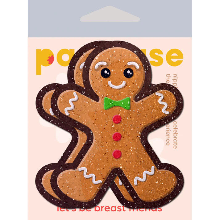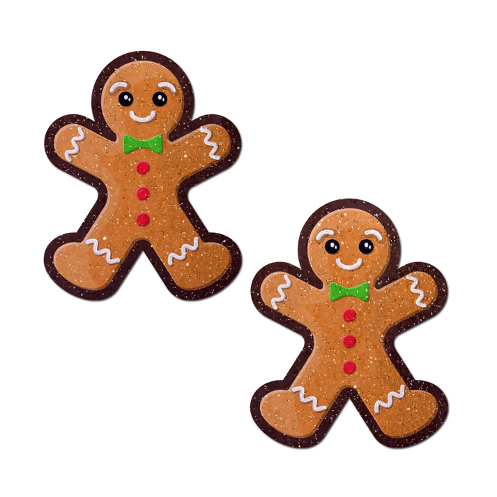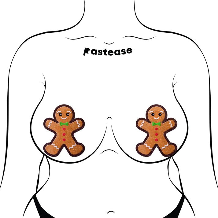 Gingerbread Man Woman Christmas Nipple Pasties by Pastease® are hand-made in the USA of soft form-fitting material that forms seamlessly to curves and resists wrinkling over hardening nipples.