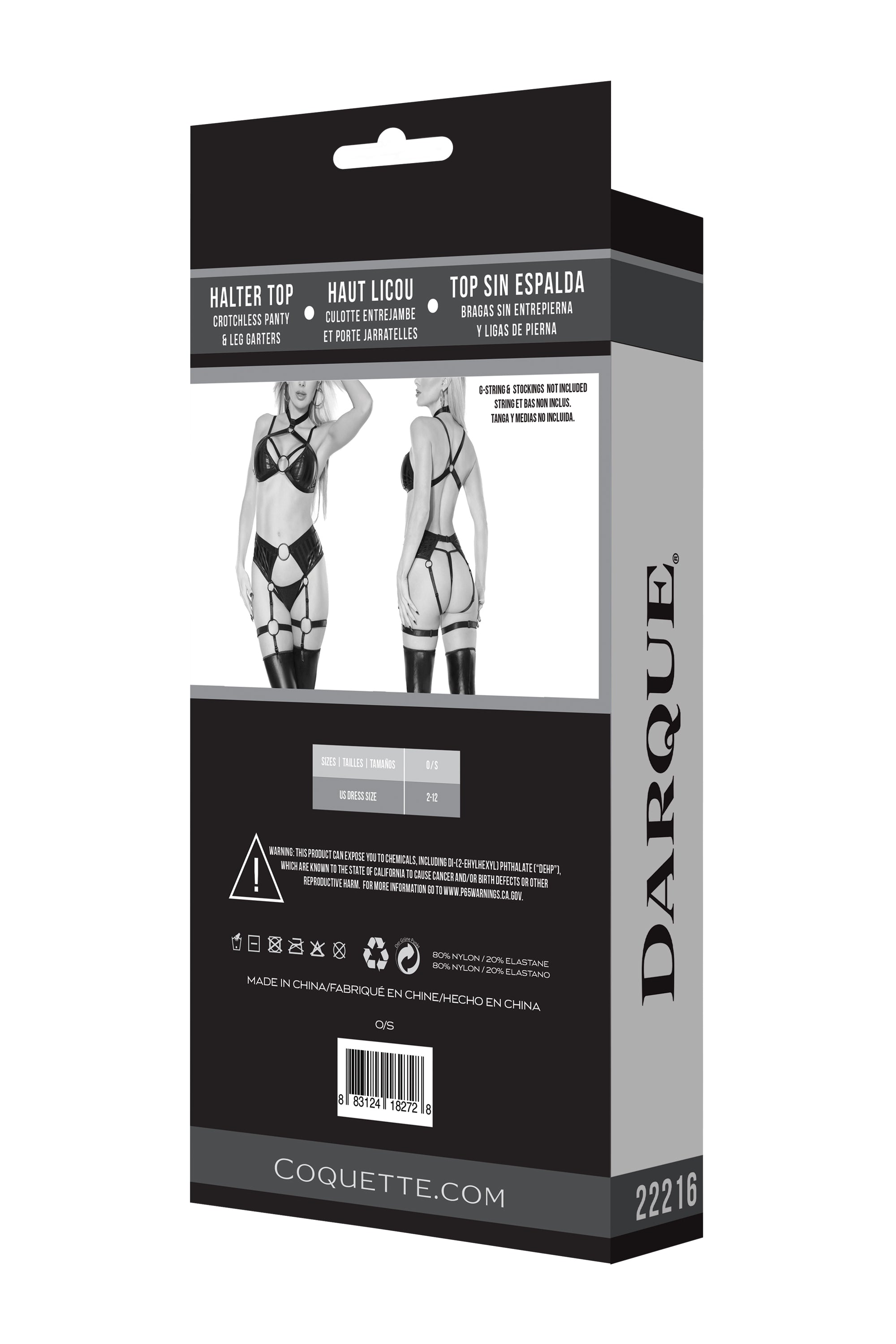 Elevate your look with the adjustable strappy details, including the halter neck and back waist straps with hook closures, while the large metal ring details add a touch of sophistication. Complete the ensemble with the adjustable leg straps featuring attached garter grips for added versatility.