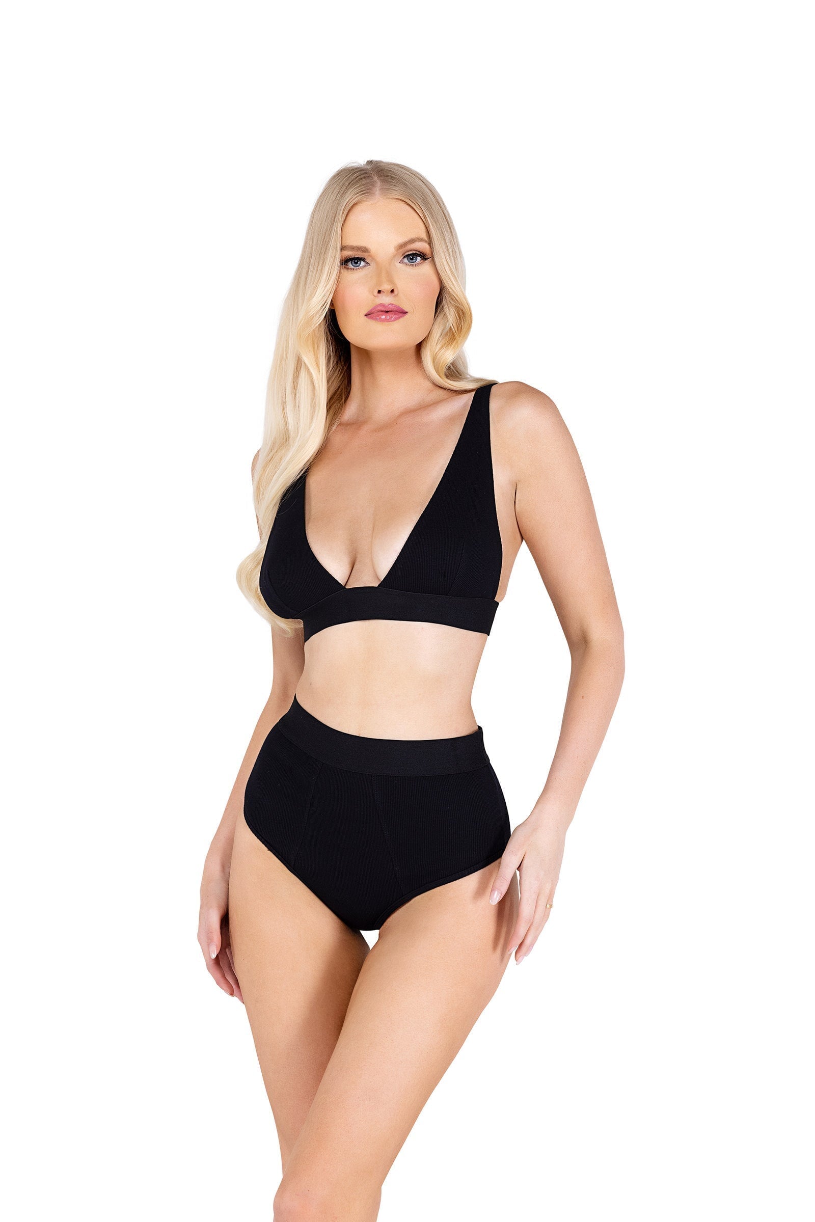 2PC Fitted Rib High-Waisted Bra Set