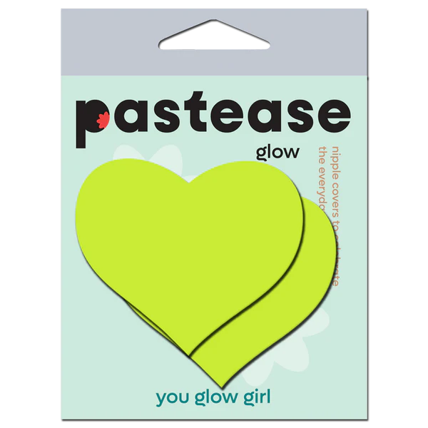 Whether you're hitting the club, attending a rave, or simply adding a touch of fun to your intimate moments, our Love: Glow in the Dark Neon Yellow Heart Pasties are the perfect accessory. Embrace the playful spirit and spread love wherever you go with these delightful pasties!