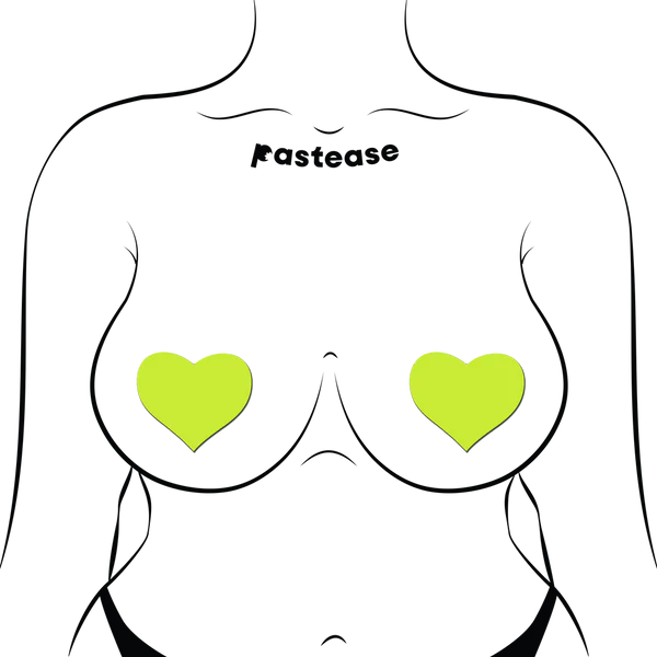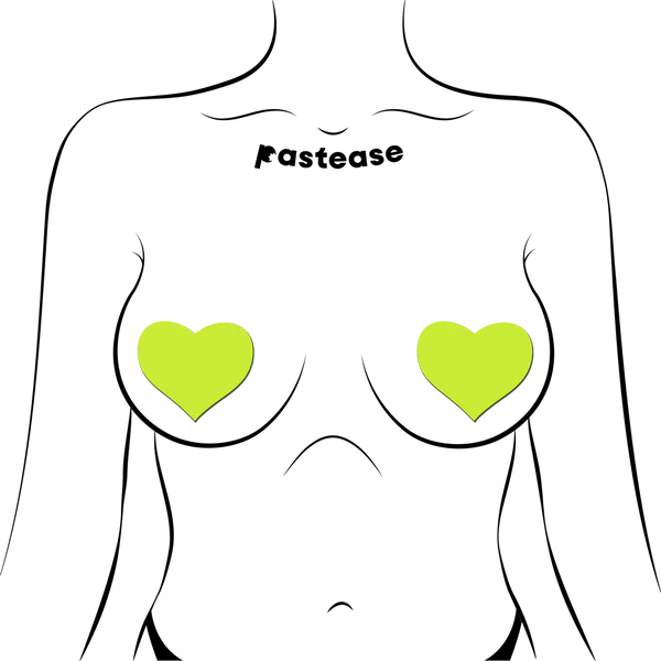 Love: Glow in the Dark Neon Yellow Heart Pasties Nipple Covers