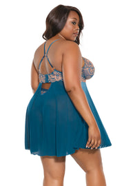Featuring a soft underwire demi cups with adjustable strap and ring details, elasticized underbust, back keyhole with hook & eye closure, adjustable straps with hookable slider, elasticized lace-waist thong & rose gold tone hardware.