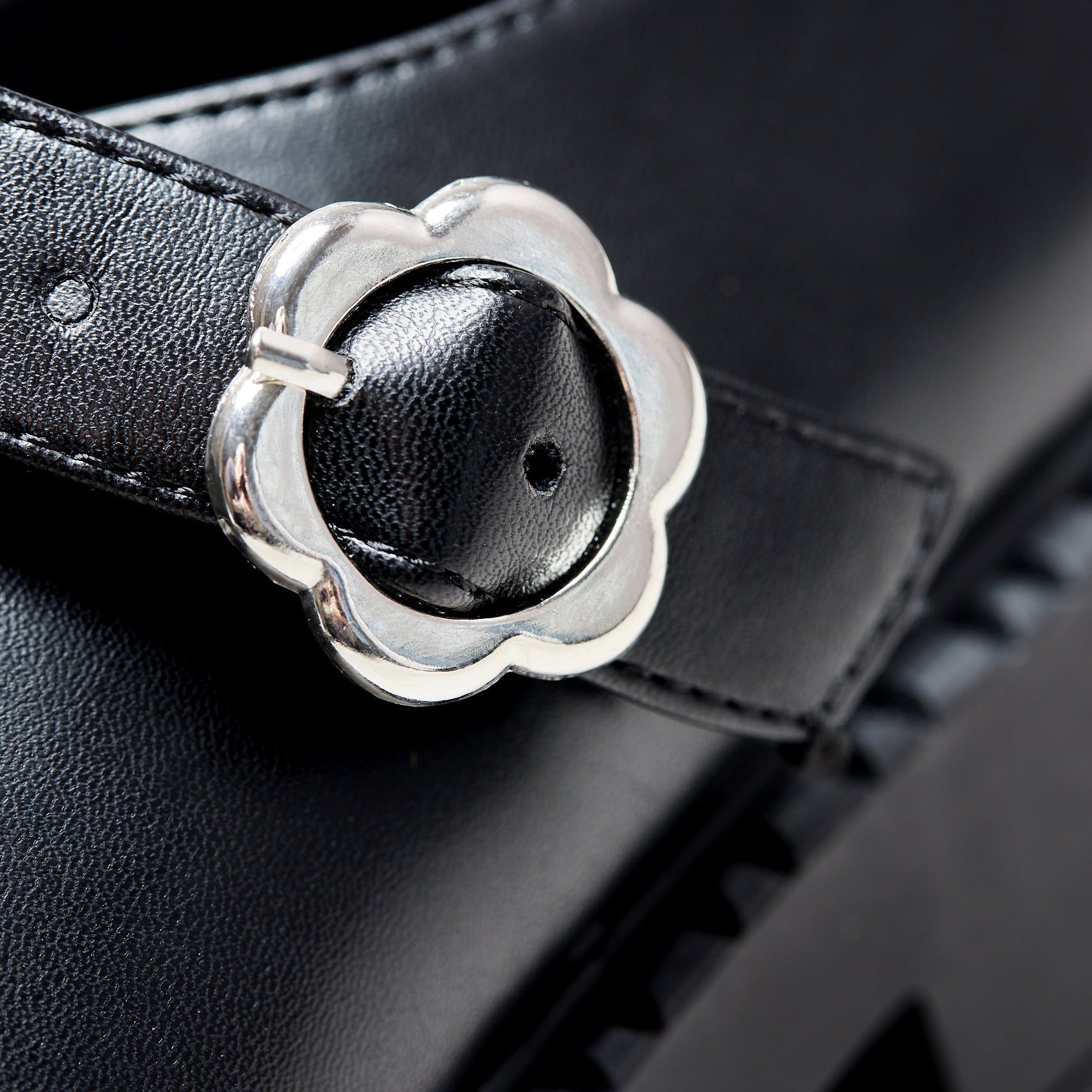 Your new favourite cute and preppy Mary Janes are here! These flatform shoes have a punky chunky sole and are completed with an adorable silver floral buckle. It's cold out there, so get some leg warmers out to pair with your chunky Mary Jane shoes. Even better - these Mary Jane shoes are all vegan, baby!