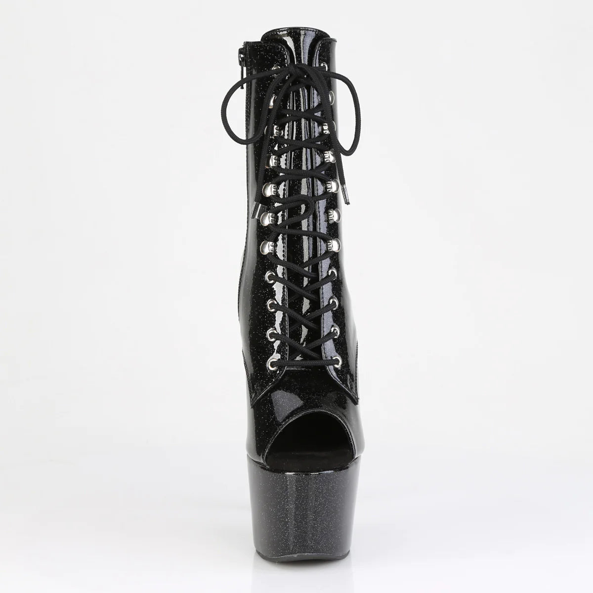 Step into style with these ankle boots featuring a striking 7-inch (178mm) heel and a fashionable 2 3/4-inch (70mm) platform. The peep-toe design and lace-up front add a touch of allure to your ensemble. Complete with the convenience of an inner side zip closure, these boots effortlessly combine sophistication and ease.
