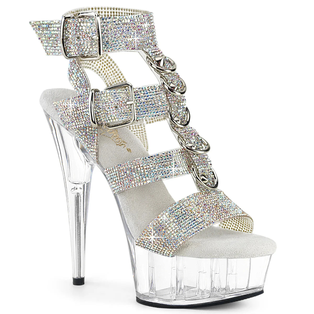Pleaser Delight-656RS-Silver/Clear-Size 5-Clearance