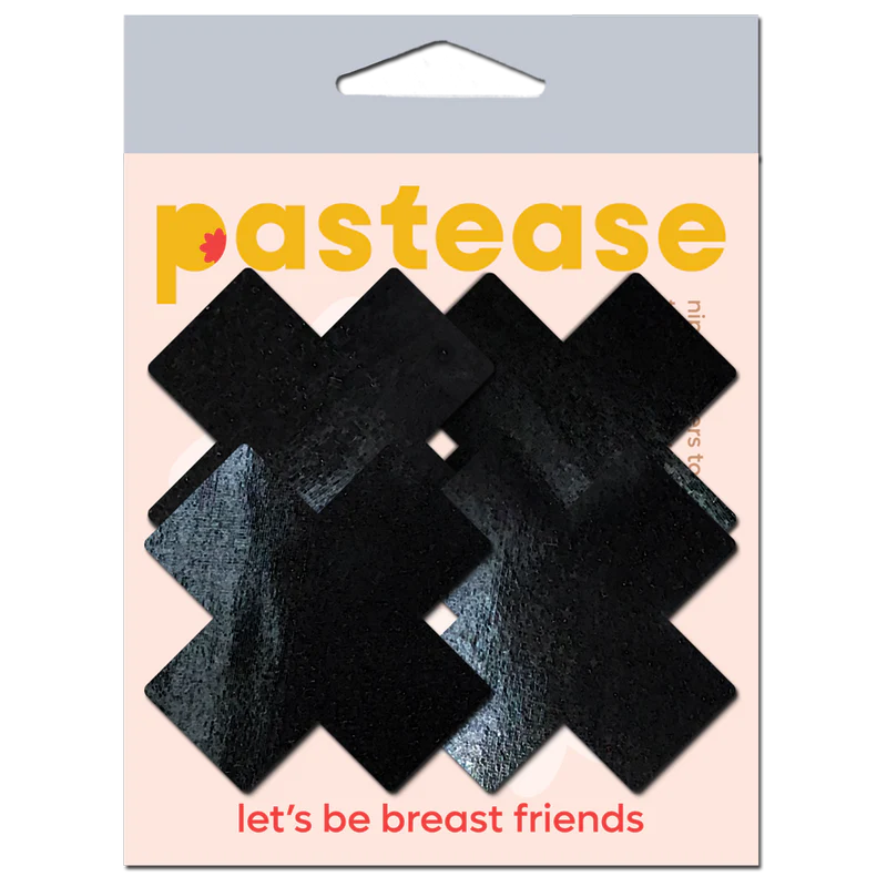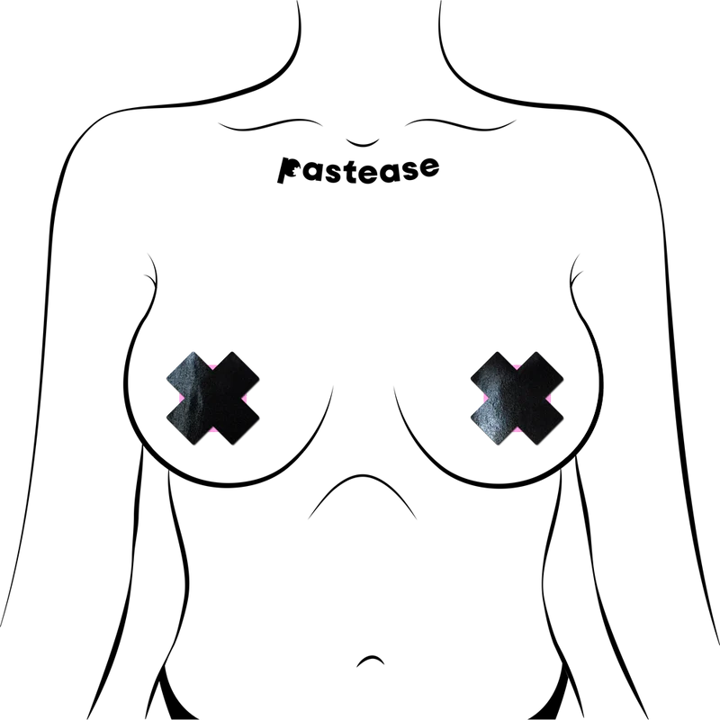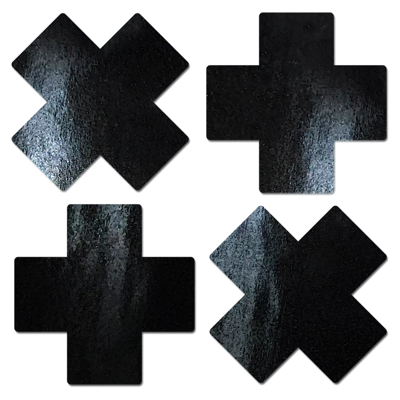 Petite Plus X: Two Pair of Small Faux Latex Pleather Vinyl Black Cross Nipple Pasties
