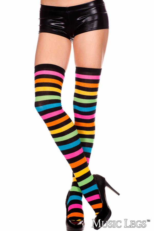 Acrylic thigh high with large rainbow stripes
