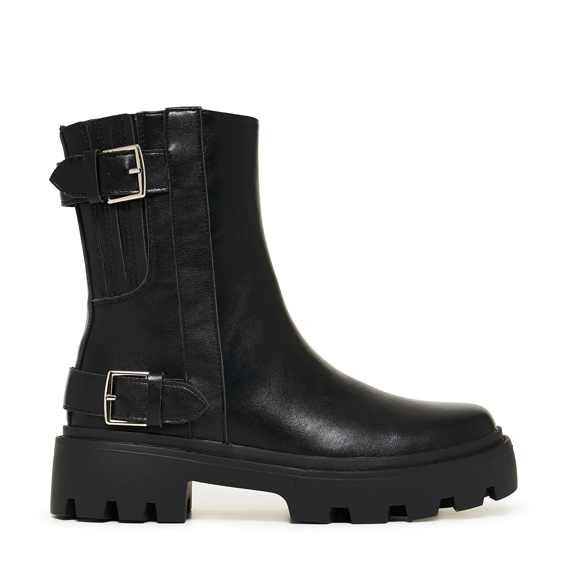 Built for stomping through the season and looking effortlessly sharp doing it, the Riven Chunky Boots bring that clean, minimalist energy with a heavy-duty finish. Buckle details at the ankle and cuff add an industrial twist, while the thick tread sole means they don’t just look tough — they are.
