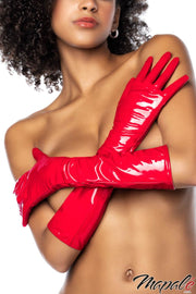 Opera-length glossy wet look gloves. (Thong MA1095 sold separately)